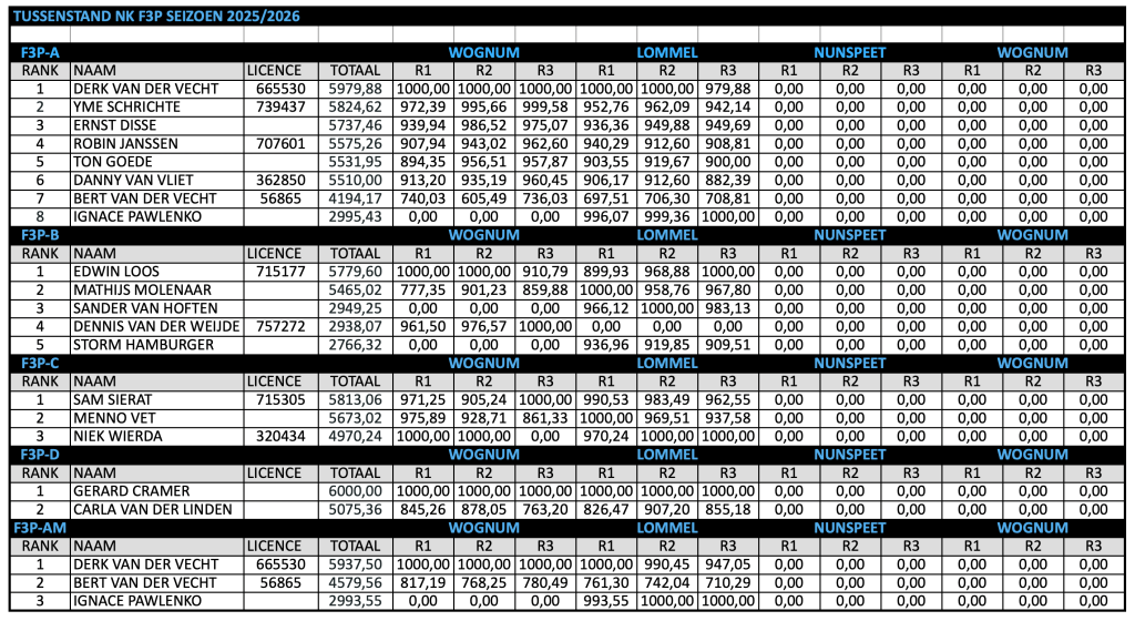 Huidige tussenstand is gebaseerd op de beste 8 van in totaal 12 vluchten.